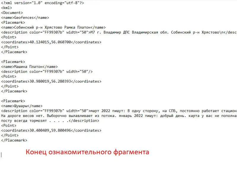Платон рамки, передвижные машины в формате csv и kml Рассылка обновлений на карте |